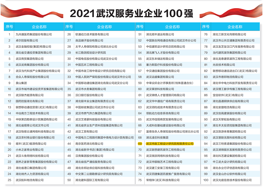 榮登“2021武漢服務(wù)業(yè)企業(yè)100強(qiáng)”