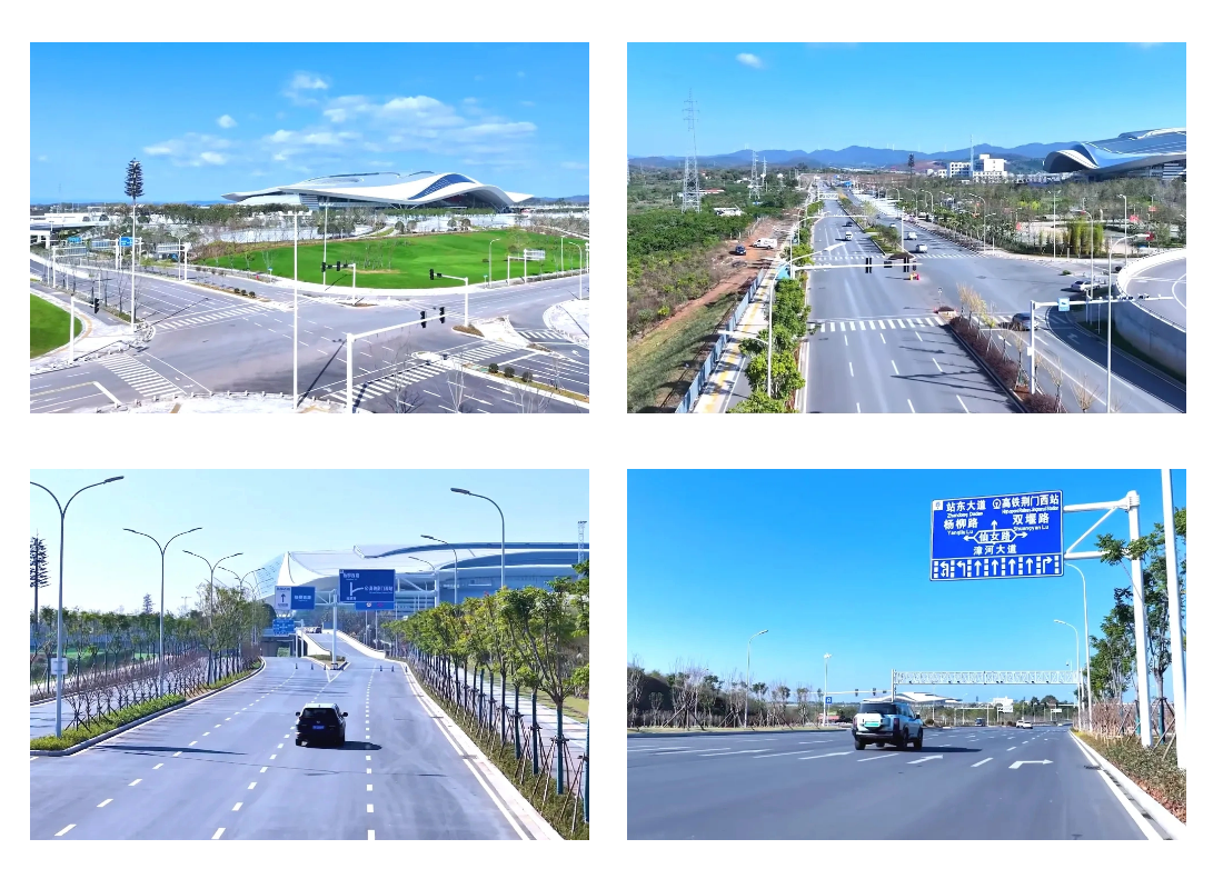 ? ? 高鐵片區(qū)交通規(guī)劃的優(yōu)劣直接影響未來片區(qū)的發(fā)展基礎(chǔ),項(xiàng)目團(tuán)隊(duì)站在“宏觀-中觀-微觀”多重視角,分層次梳理高鐵樞紐與外圍片區(qū)交通聯(lián)系、高鐵樞紐片區(qū)內(nèi)部路網(wǎng)系統(tǒng)、高鐵樞紐核心區(qū)交通集散,充分考慮多種交通方式之間的交通銜接以及不同區(qū)域之間的交通組織,確?!叭?車-路”高效協(xié)同。通過多要素、多方案的比選分析,最終提出了以“三橫四縱”為骨架,次支路為補(bǔ)充,各級道路相互協(xié)調(diào)的高鐵片區(qū)路網(wǎng)系統(tǒng)。