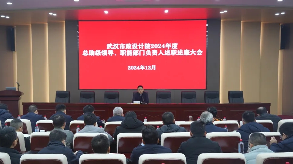 ? ? 12月24日下午,武漢市政院組織召開了2024年度總院中層干部述職述廉暨民主測評大會。公司領(lǐng)導(dǎo)班子成員、各部門(單位)負責人、職能部門全體員工共計70余人參加會議。市城投集團公司副總經(jīng)理,武漢市政院黨委書記、董事長汪小南出席會議并講話。