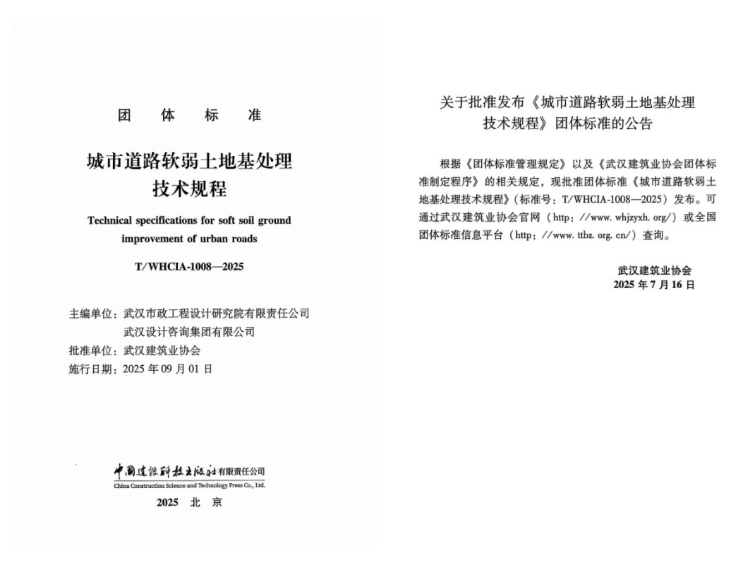 武漢市政院與武漢設(shè)計(jì)咨詢(xún)集團(tuán)聯(lián)合主編的團(tuán)體標(biāo)準(zhǔn)《城市道路軟弱土地基處理技術(shù)規(guī)程》,已由武漢建筑業(yè)協(xié)會(huì)批準(zhǔn)發(fā)布。該規(guī)程是國(guó)內(nèi)首部專(zhuān)門(mén)針對(duì)城市道路軟弱土地基處理的技術(shù)標(biāo)準(zhǔn),有效解決了現(xiàn)行建筑與公路規(guī)范在市政道路工程中存在的諸多不明確、不統(tǒng)一的應(yīng)用問(wèn)題。其內(nèi)容系統(tǒng)全面,兼具實(shí)用性與先進(jìn)性,既體現(xiàn)了市政行業(yè)特色,又契合城市道路實(shí)際建設(shè)需求,對(duì)湖北省內(nèi)城市道路軟弱土地基處理的設(shè)計(jì)、施工、關(guān)鍵技術(shù)方法及檢測(cè)監(jiān)測(cè)等方面提供了權(quán)威依據(jù)與科學(xué)指導(dǎo)。該《規(guī)程》整體達(dá)到國(guó)內(nèi)先進(jìn)水平,在行業(yè)與省內(nèi)居于領(lǐng)先地位。它的發(fā)布進(jìn)一步鞏固了武漢市政院在市政巖土工程領(lǐng)域的技術(shù)優(yōu)勢(shì),顯著提升了公司的行業(yè)影響力與核心競(jìng)爭(zhēng)力。