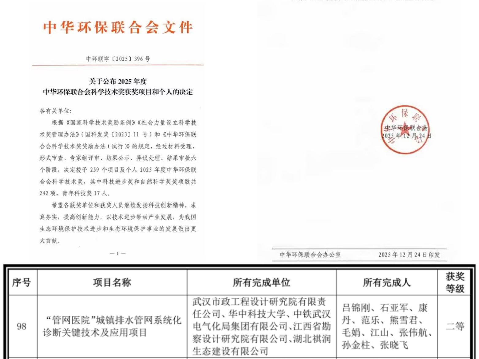 ? ? 近日,武漢市政院自主研發(fā)的“‘管網(wǎng)醫(yī)院’城鎮(zhèn)排水管網(wǎng)系統(tǒng)化診斷關(guān)鍵技術(shù)及應用研究”,經(jīng)中華環(huán)保聯(lián)合會在北京組織技術(shù)成果評價會議評審,順利通過科技成果評價,被認定為達到“國際先進水平”,并榮獲“2025年中華環(huán)保聯(lián)合會科技進步獎二等獎”。