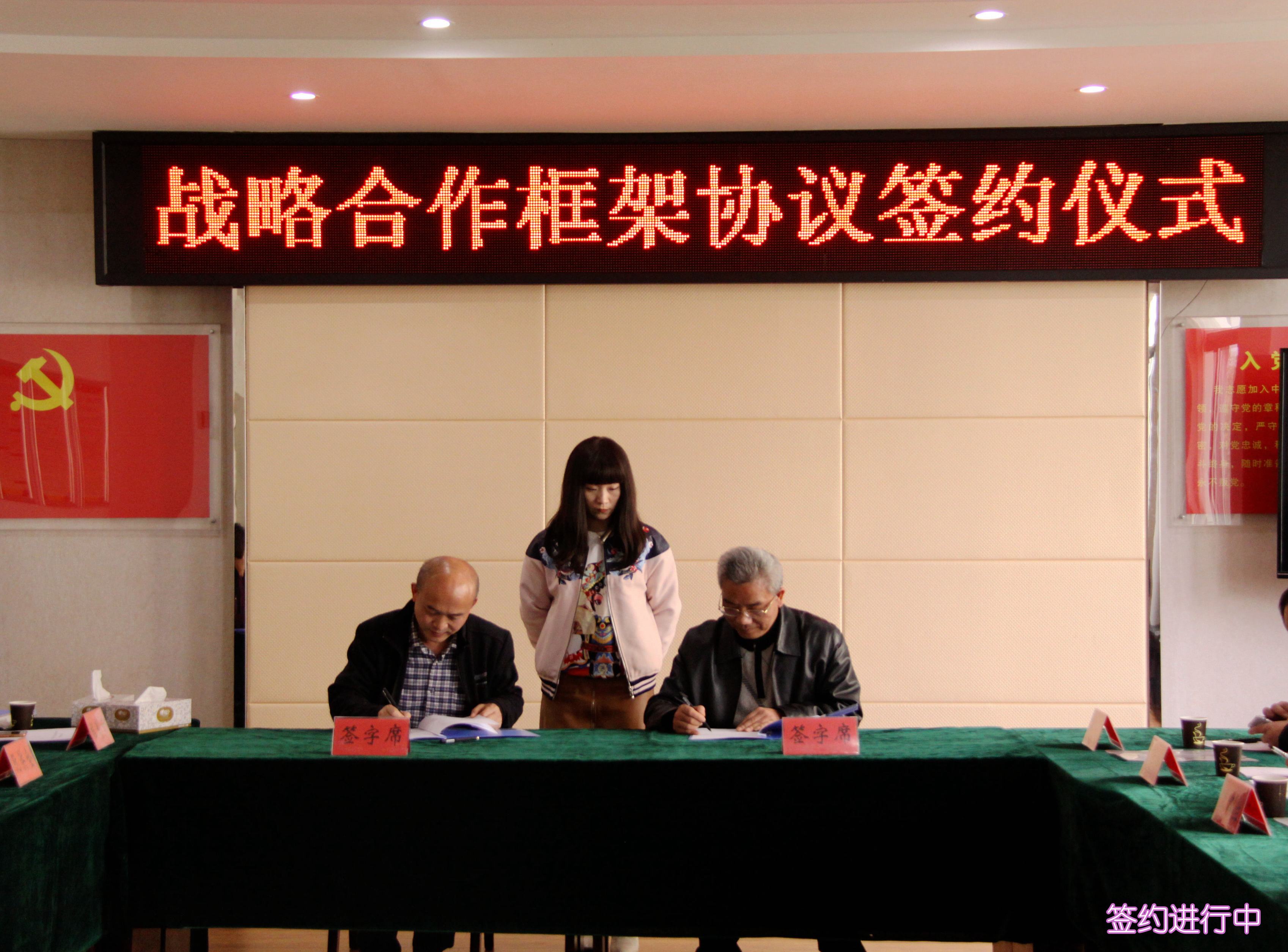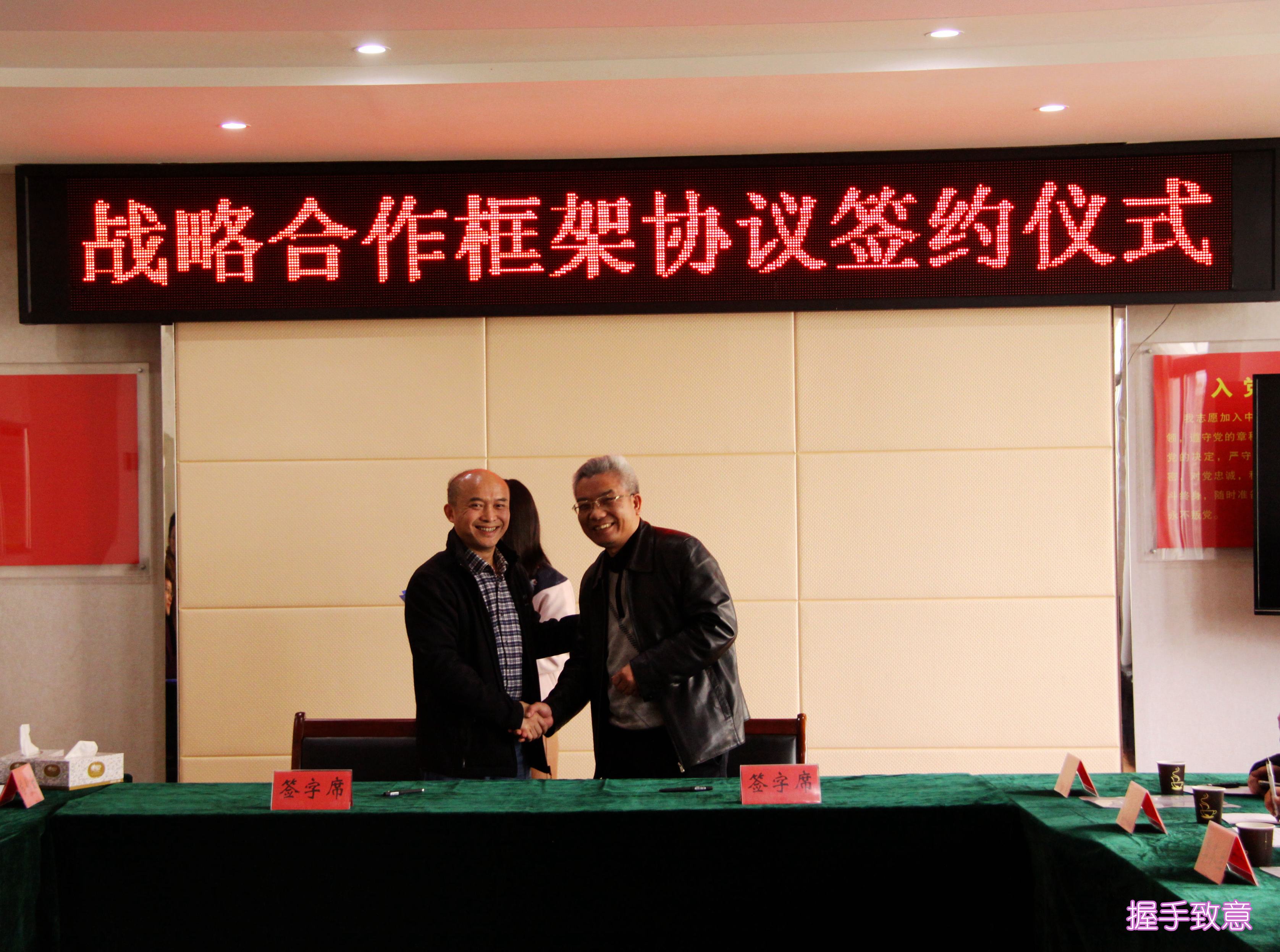 ??? 周俊與駱進(jìn)分別在戰(zhàn)略合作協(xié)議上簽字,并合影留念。