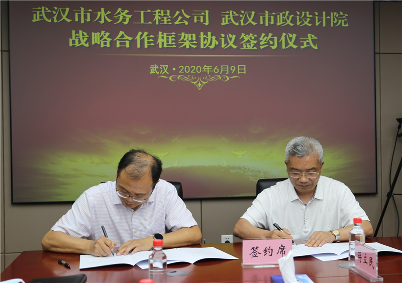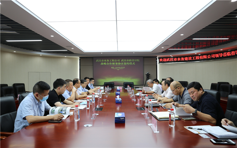 2020年6月9日下午,公司與武漢市水務(wù)建設(shè)工程有限公司簽訂戰(zhàn)略合作框架協(xié)議,雙方將依托各自?xún)?yōu)勢(shì)資源,在城市水務(wù)建設(shè)、市政基礎(chǔ)設(shè)施建設(shè)等多領(lǐng)域展開(kāi)深度合作。武漢市水務(wù)建設(shè)工程有限公司經(jīng)理程飛、黨委書(shū)記陳軍、副經(jīng)理宋萍森,公司董事長(zhǎng)武興治、總經(jīng)理姚華、副總經(jīng)理周俊等出席了簽約儀式。