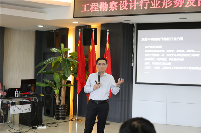 2020年7月24日,公司在西二樓會(huì)議室舉行工程勘察設(shè)計(jì)行業(yè)形勢(shì)及國(guó)資改革政策環(huán)境分析培訓(xùn)會(huì),邀請(qǐng)?zhí)鞆?qiáng)管理顧問(wèn)創(chuàng)始人、總經(jīng)理祝波善對(duì)當(dāng)前行業(yè)發(fā)展形勢(shì)及相關(guān)政策進(jìn)行解讀。公司領(lǐng)導(dǎo)班子、總經(jīng)理助理、公司副總工程師及公司所屬部門(單位)正副職管理人員參加了培訓(xùn)。