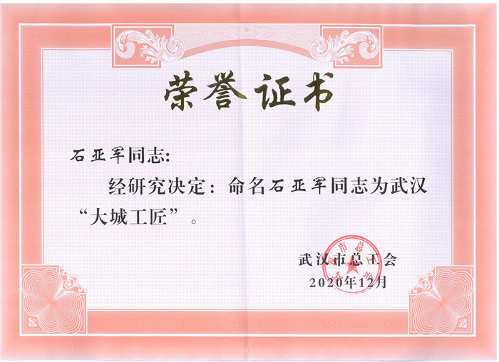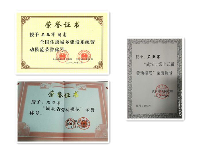 石亞軍同志先后榮獲“住房城鄉(xiāng)建設(shè)系統(tǒng)勞動(dòng)模范”“湖北省勞動(dòng)模范”“武漢市勞動(dòng)模范”、武漢市“雙創(chuàng)”競(jìng)賽活動(dòng)“創(chuàng)新能手”、武漢市職工職業(yè)道德建設(shè)“雙十佳”先進(jìn)個(gè)人等榮譽(yù)稱號(hào),并于2018年作為“新時(shí)代、新氣象、新作為”武漢市勞動(dòng)模范先進(jìn)事跡報(bào)告團(tuán)成員在武漢市作巡回報(bào)告,這是對(duì)他甘于奉獻(xiàn)、愛崗敬業(yè)、守正創(chuàng)新精神的褒獎(jiǎng)!