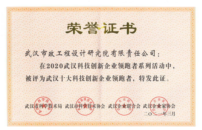 2021年4月15日,武漢創(chuàng)新與創(chuàng)業(yè)高峰論壇暨武漢科技創(chuàng)新企業(yè)領(lǐng)跑者系列活動(dòng)頒獎(jiǎng)盛典在武漢電視臺(tái)演播廳隆重舉行,武漢市政設(shè)計(jì)院榮膺“2020年度武漢十大科技創(chuàng)新企業(yè)領(lǐng)跑者”稱(chēng)號(hào),公司副總經(jīng)理周俊作為嘉賓上臺(tái)領(lǐng)獎(jiǎng)。