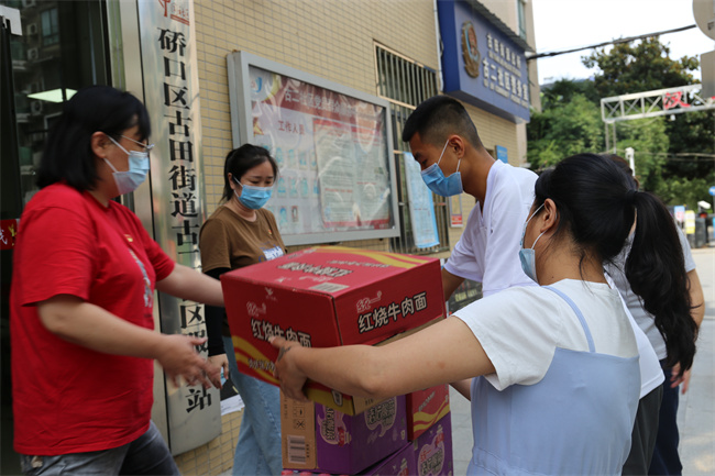 疫情無情人有情。2021年8月6日下午,公司黨委副書記、紀委書記談逢陽代表公司向對口下沉的古二社區(qū)捐贈了防疫物資以及生活用品,并詳細詢問了社區(qū)防控需求情況