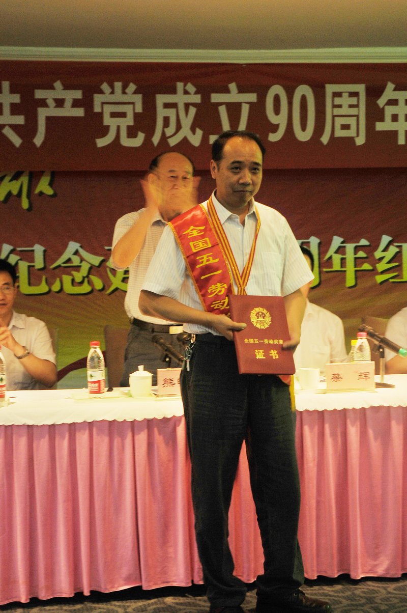 熊明亮副主任為蔣樂(lè)同志頒發(fā)了“全國(guó)五一勞動(dòng)獎(jiǎng)?wù)隆焙酮?jiǎng)金,蔣樂(lè)同志發(fā)表了獲獎(jiǎng)感言,并當(dāng)場(chǎng)決定,將所有獎(jiǎng)金捐贈(zèng)給貧困地區(qū)的鄉(xiāng)親,引來(lái)了現(xiàn)場(chǎng)如潮的掌聲。