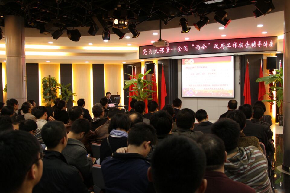 ????3月26日,公司在二樓會議室舉辦了《新常態(tài)下的2015中國經(jīng)濟(jì)——2015年“兩會”精神解讀》專題講座,特邀市委黨校教務(wù)處長章茂龍教授專題解讀李克強(qiáng)總理在十二屆全國人大三次會議所作的《政府工作報告》,公司全體黨員聽取了講座。