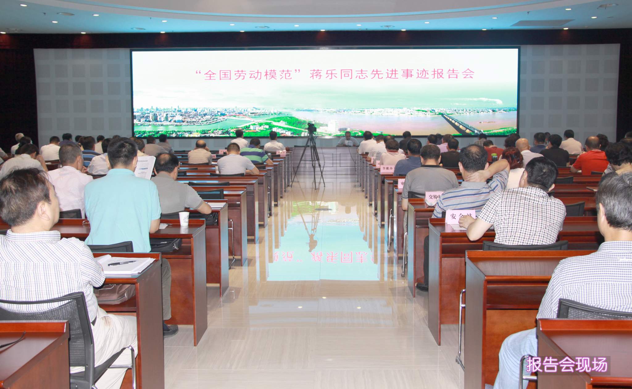 ??? 6月26日上午,市城建委一樓報(bào)告廳氣氛莊嚴(yán),座無(wú)虛席,“全國(guó)勞動(dòng)模范”蔣樂(lè)同志先進(jìn)事跡報(bào)告會(huì)在這里舉行,來(lái)自全市城建系統(tǒng)的近兩百名工作者參加了大會(huì),市城建委彭浩主任等領(lǐng)導(dǎo)出席大會(huì),公司領(lǐng)導(dǎo)、黨支部書(shū)記參加了會(huì)議。