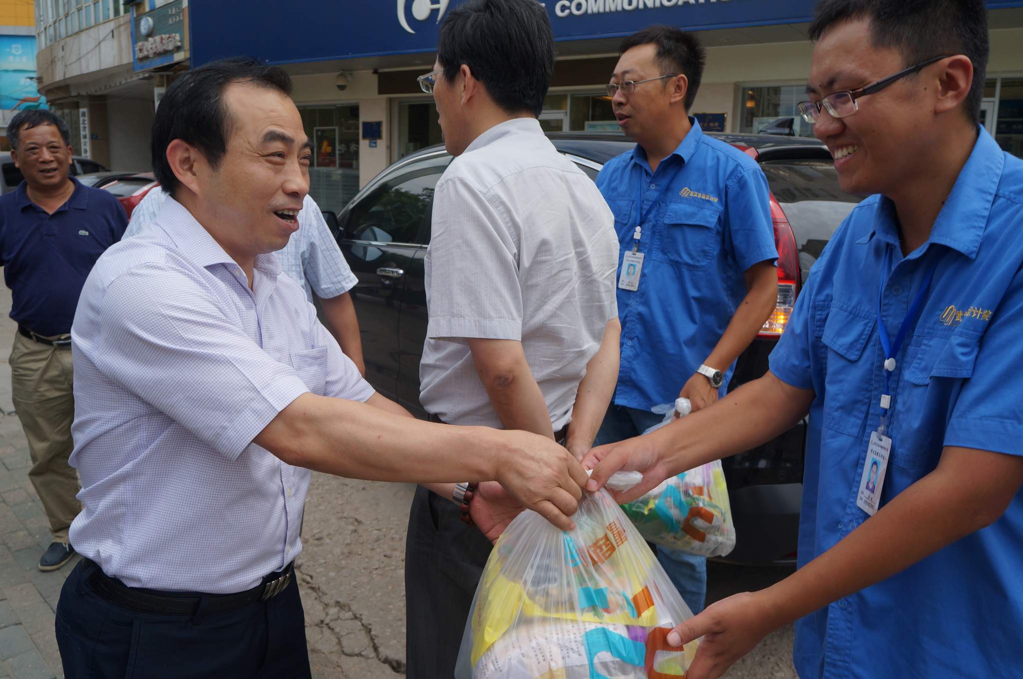 ??? 8月5日,公司總經(jīng)理姚華、副總經(jīng)理趙世杰帶領綜合辦公室、監(jiān)理公司、勘測設計院等部門負責人,對部分工地進行了走訪慰問,為高溫下堅持工作的一線員工送上一份清涼。
