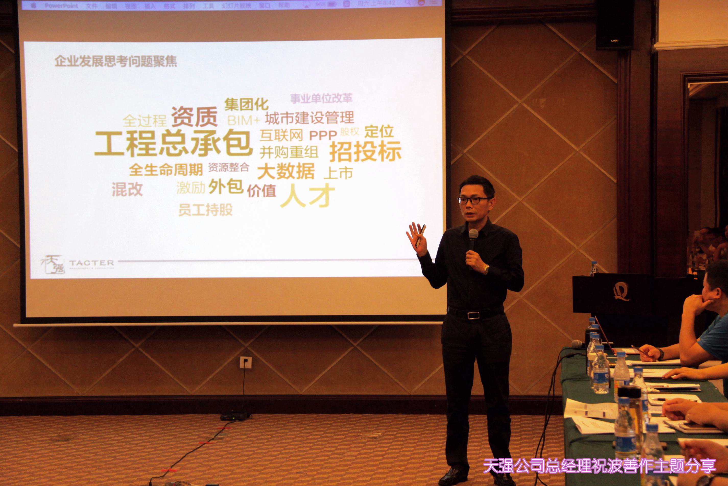 ??? 會議由總經(jīng)理姚華主持,他要求參會人員認真學習,開拓思路,為公司發(fā)展獻計獻策。天強公司總經(jīng)理祝波善就行業(yè)發(fā)展形勢做了專題分享,他從數(shù)據(jù)出發(fā),結合實際案例,對當前勘察設計行業(yè)發(fā)展形勢進行了深入剖析,為本次戰(zhàn)略研討會做了良好的鋪墊。天強武漢公司經(jīng)理陳茹冰對項目小組前一階段訪談、調(diào)研情況和結果進行了介紹,為研討提供了詳實的參考資料。